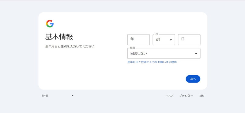 そして上記画面の指示に従い、氏名・生年月日・性別を入力しましょう。