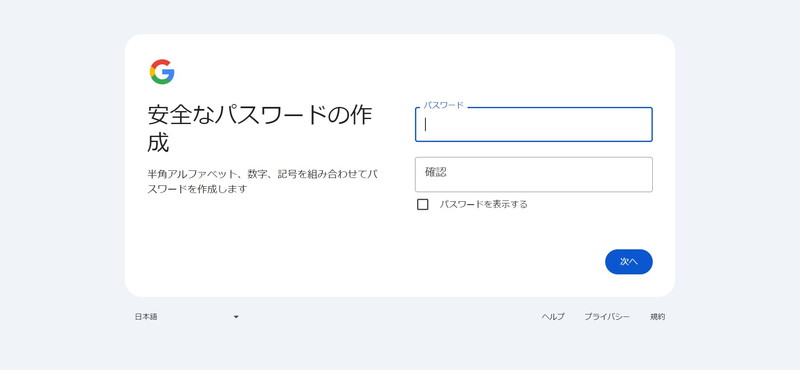 Googleアカウントを作成する際には、パスワードをしっかりと設定することが大切です。Googleサービスの機密データを危険にさらさないように、推測されにくいパスワードをしっかりと考えましょう。