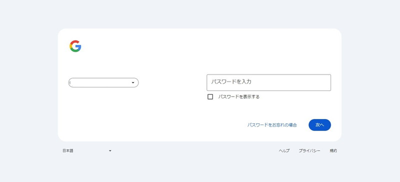 上記画面でメールアドレスまたは電話番号を入力すると以下の通りパスワード入力を求められるので、登録済みパスワードを入力しましょう。