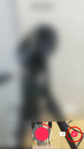 動画の撮影が完了したら、赤マルで囲われた「チェックボタン」を押します。そうすると、次に編集画面に移ります。また、ここで×ボタンを押すことで、動画を再度撮影することもできます。